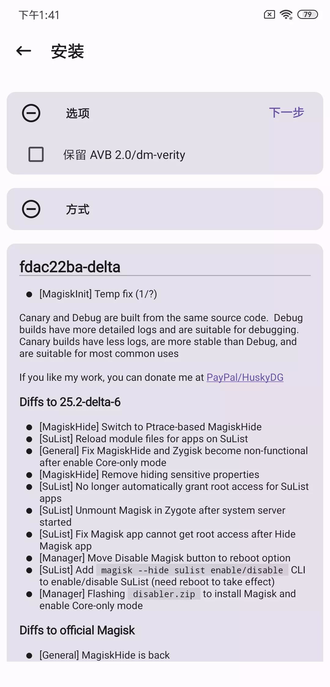 安装Magisk Delta,这是Magisk的一个好用的第三方分支