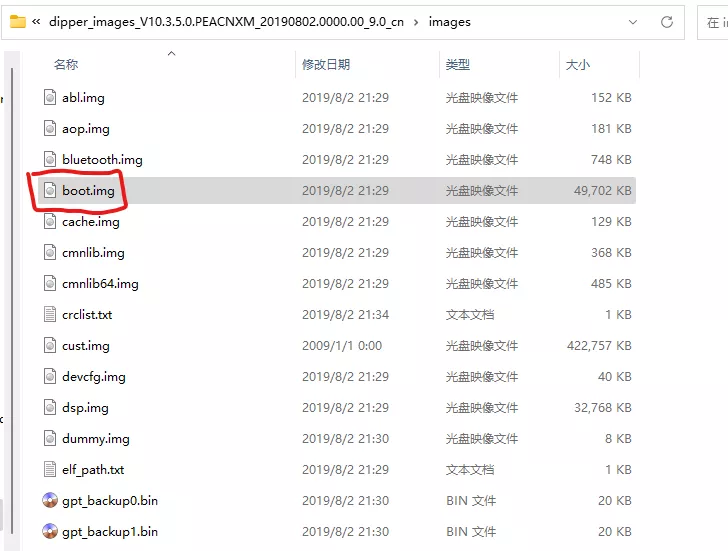 经过几次解压后,打开Image文件夹,找到boot.img拷贝到手机中备用