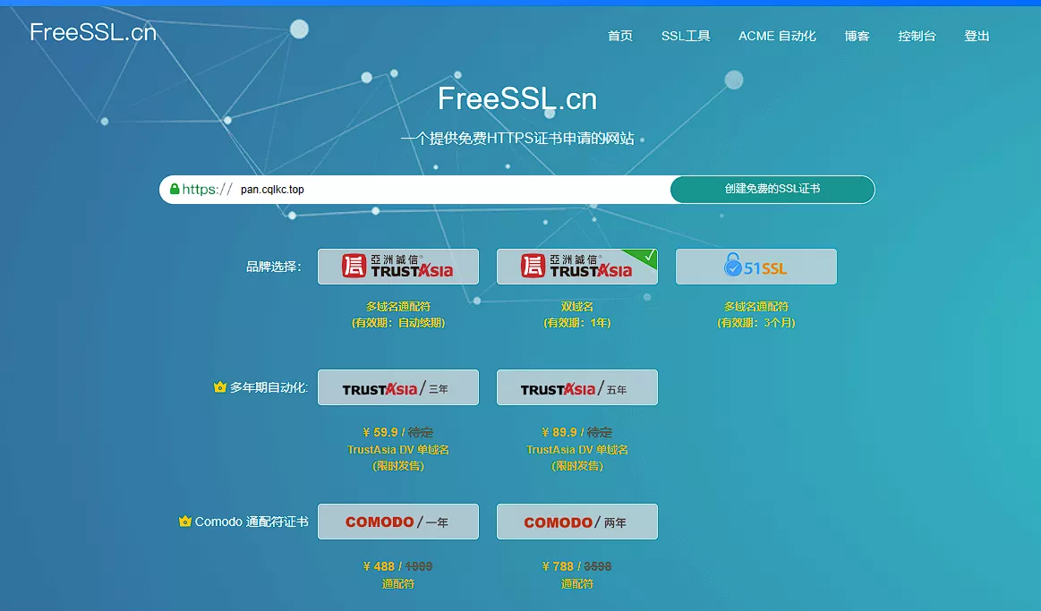 由于绑定到了自己的域名下,因此需要自己去申请SSL证书